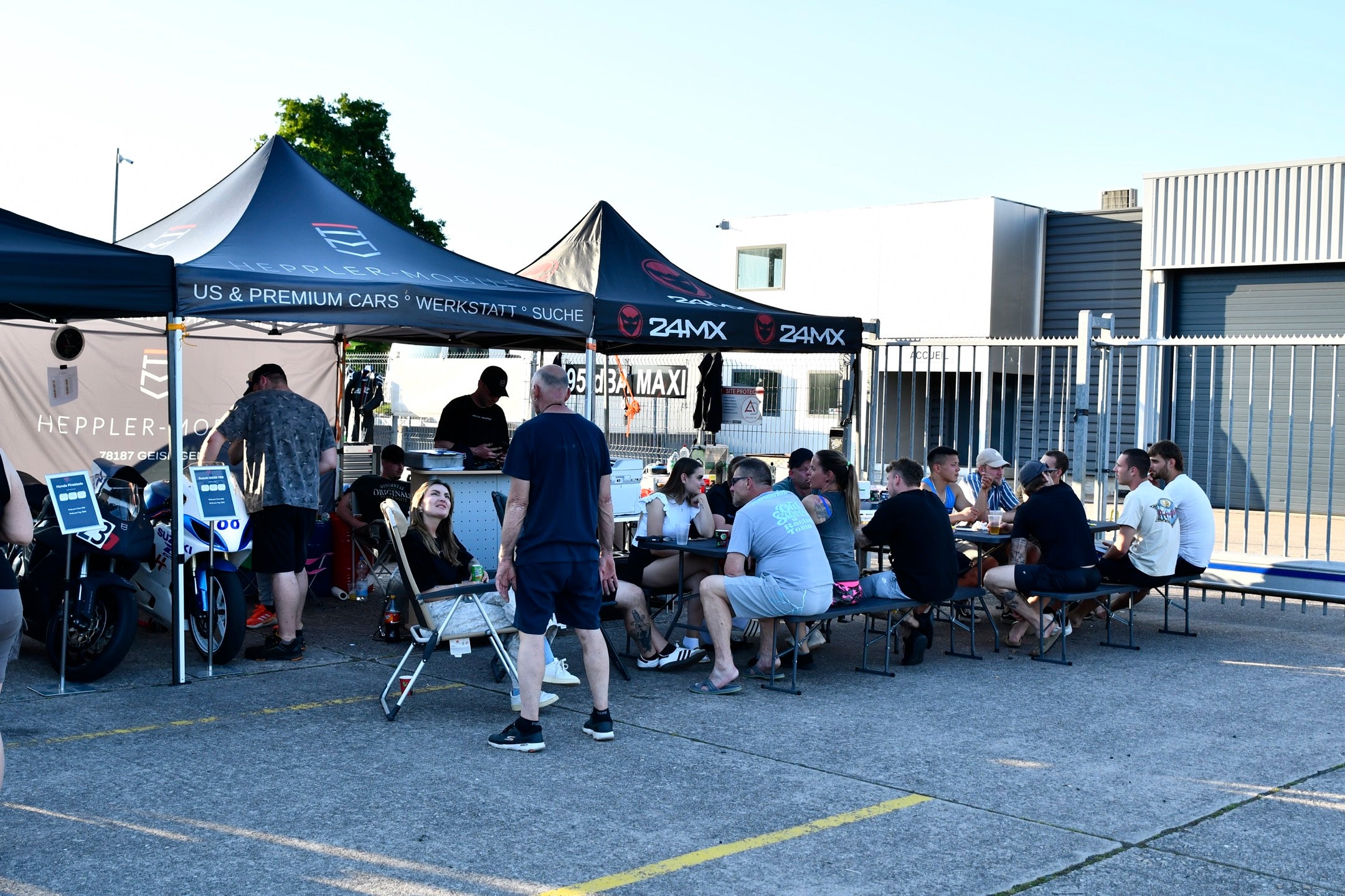 🥳 Am ersten Abend feiern wir zusammen den Start ins Rennwochenende – ganz entspannt im Fahrerlager.